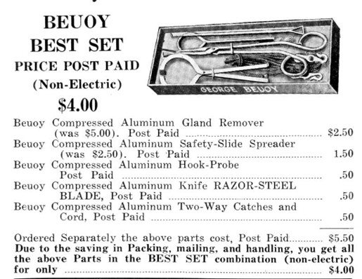 George Beuoy of Kansas was known as the “Capon King”, having promoted the capon as a delicacy, and he sold thousands of capons. He developed, manufactured, and sold the instruments to produce capons for home use. He also published many books, claiming to have sold more than 1,000,000 of them during his lifetime. His books publicized the capon, but also advertised his instruments, and gave instructions for turning cockerels into capons.