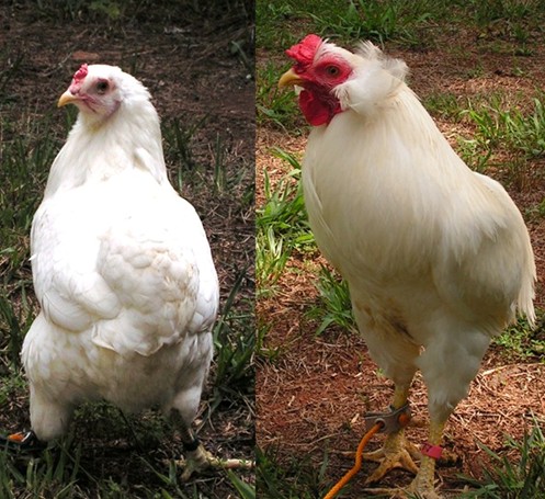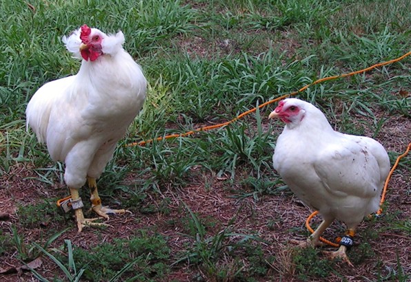 We raise only white large fowl (standard size) Araucanas. Since they belong to a breed that is in a state of development, we constantly practice selective breeding to improve our flock.